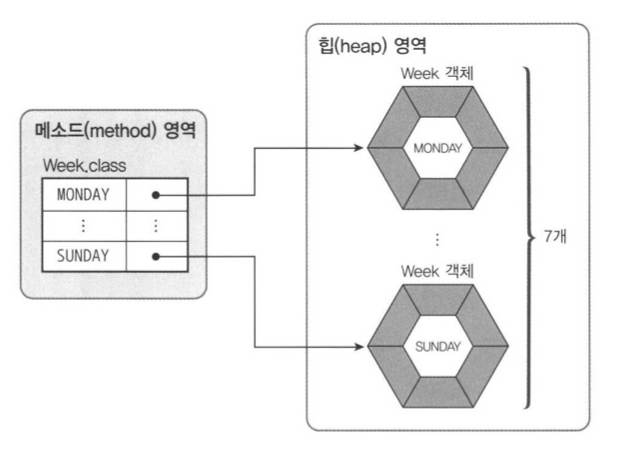 public enum Week {MONDAY, TUESDAY, WEDNESDAY, THURSDAY, FRIDAY, ...}